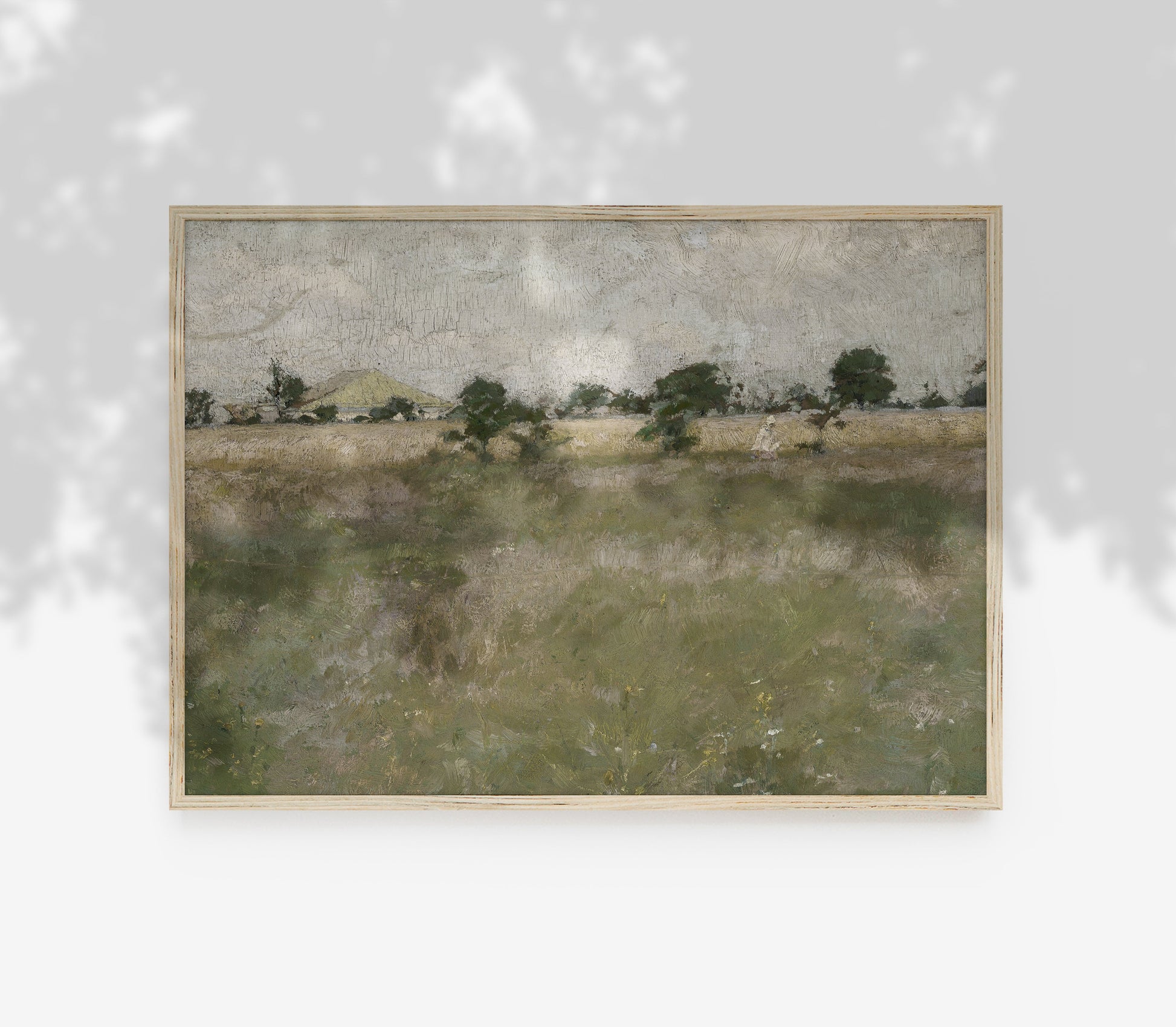 Hyggely Vintage Art Print Collection - Antique Muted Green Field Painting